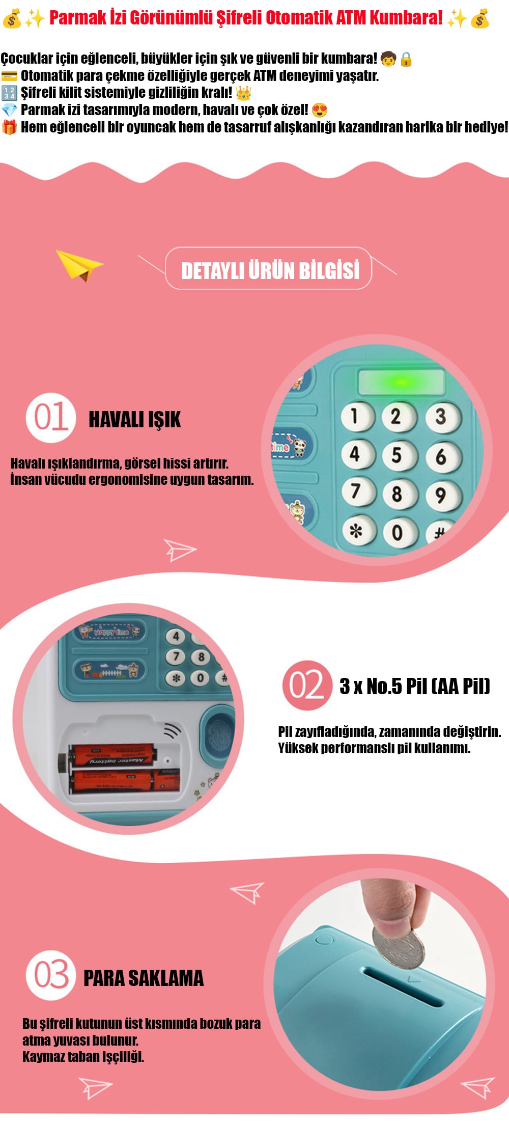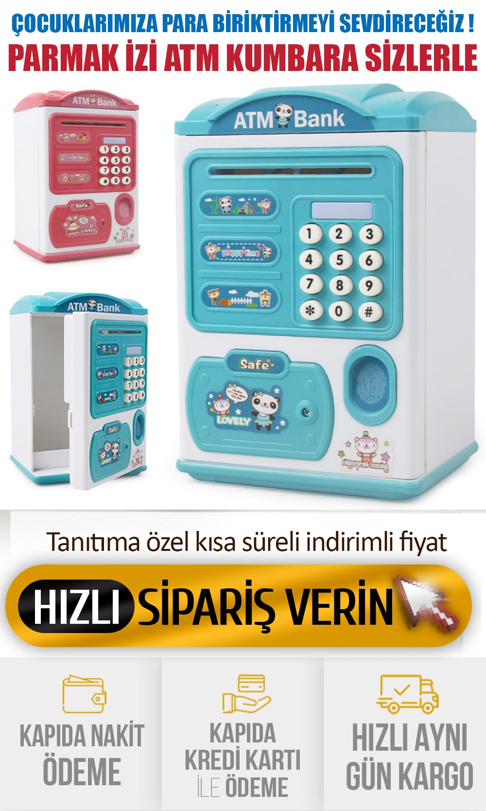 3 Adet PARMAK İZLİ ATM KUMBARA -